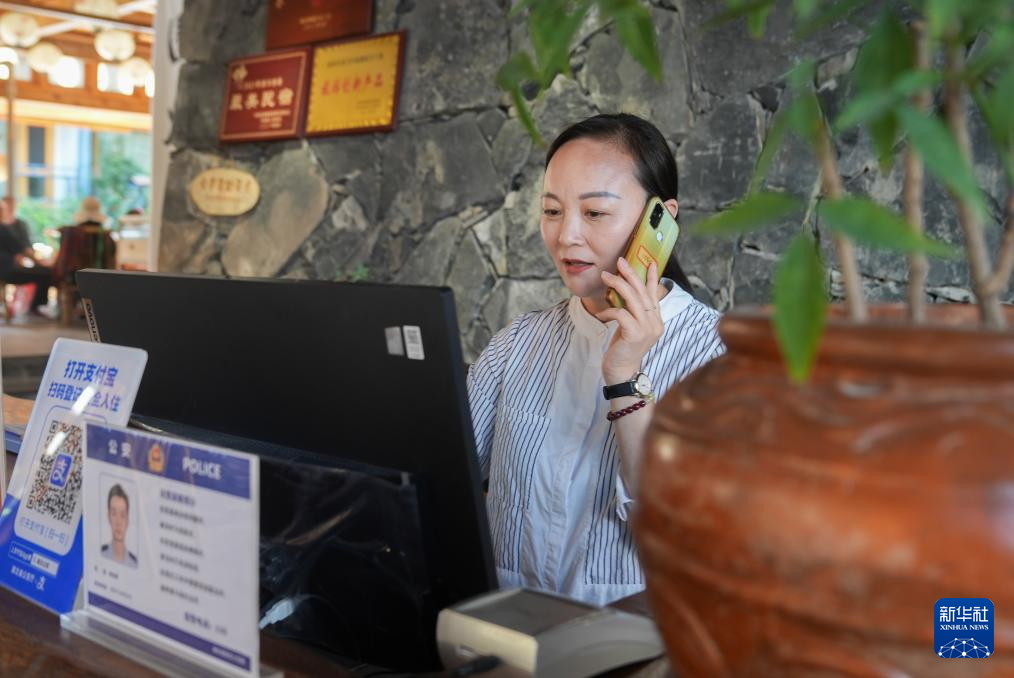 8月5日,工作人员在神农架林区木鱼镇一家民宿前台忙碌。