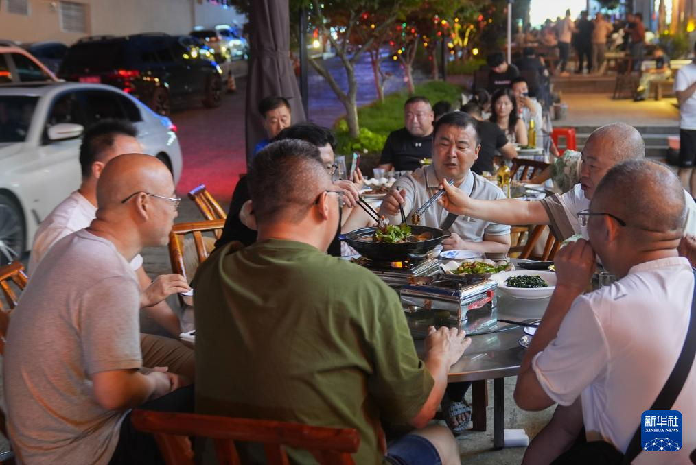 8月5日,游客在神农架林区木鱼镇街边饭店用餐。