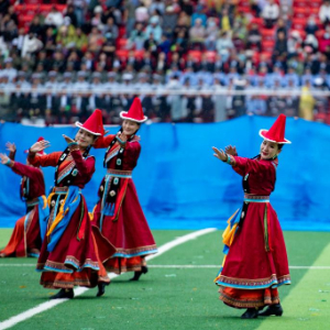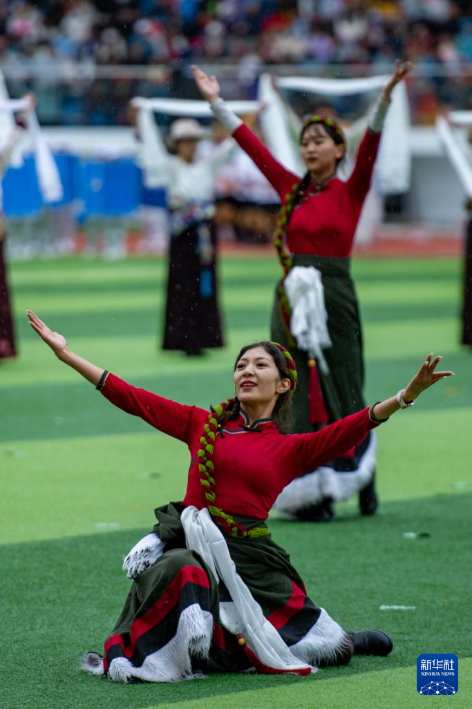 8月8日,在海西蒙古族藏族自治州德令哈市,演员在文艺展演活动上表演。