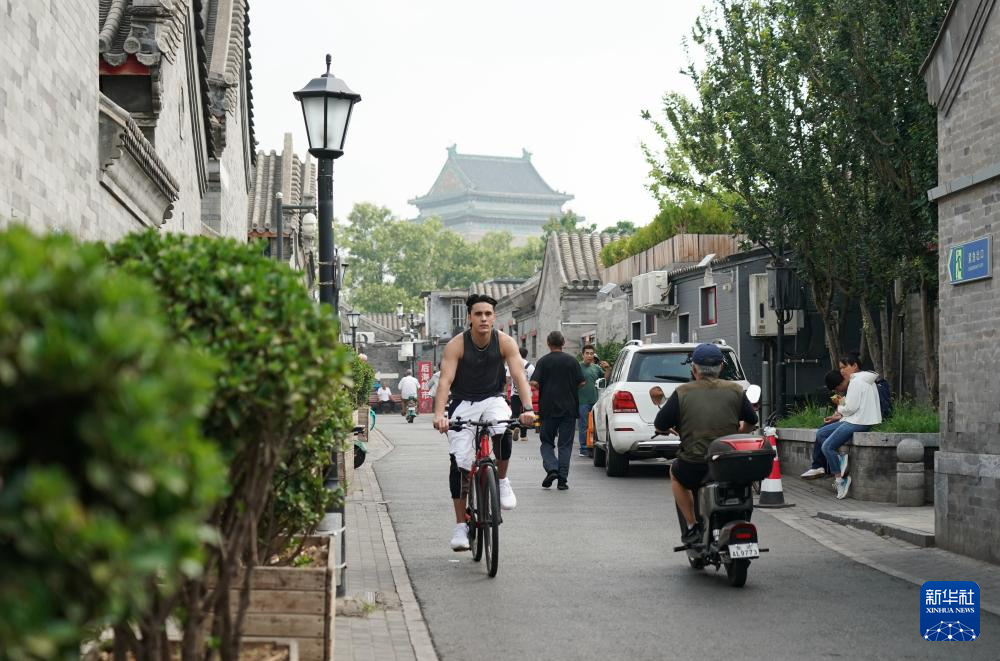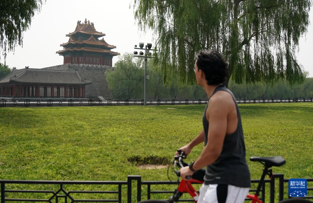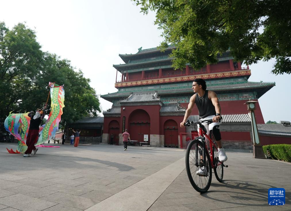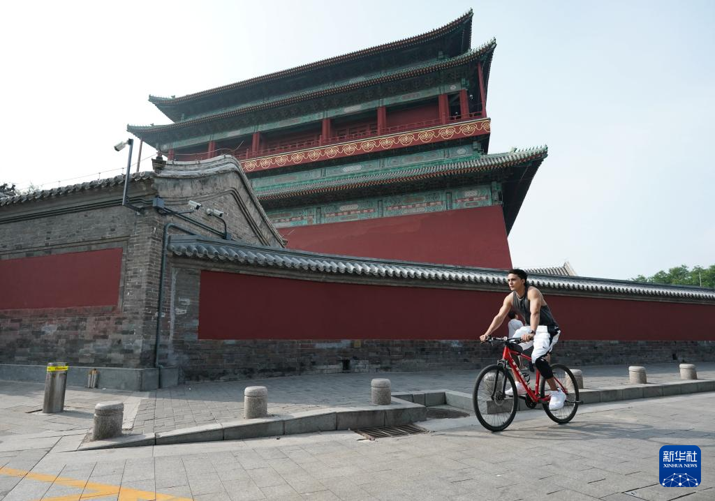 6月30日,兰佩丝在北京鼓楼下骑行游玩。法国人兰佩丝在北京生活工作多年,他是一名计算机工程师,同时也是一名马拉松爱好者,每周都会到奥森公园进行训练。