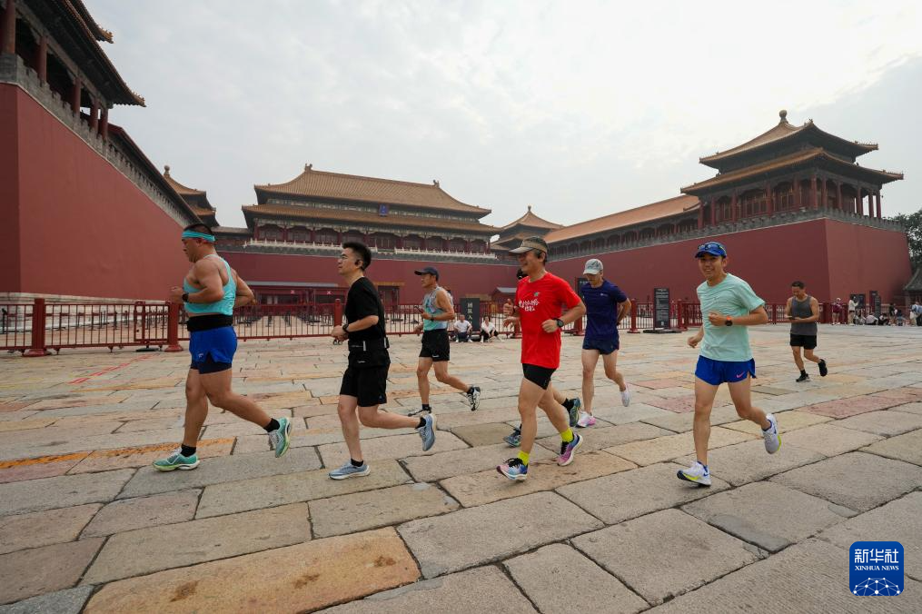 7月6日,跑步爱好者们奔跑在故宫午门前。