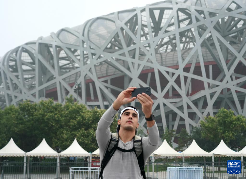 7月14日,兰佩丝在国家体育场前拍照留念。法国人兰佩丝在北京生活工作多年,他是一名计算机工程师,同时也是一名马拉松爱好者,每周都会到奥森公园进行训练。