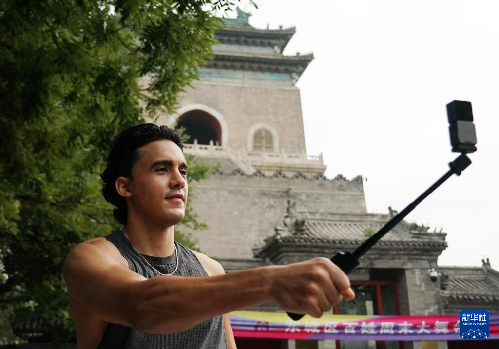6月30日,兰佩丝在北京钟楼下拍照。法国人兰佩丝在北京生活工作多年,他是一名计算机工程师,同时也是一名马拉松爱好者,每周都会到奥森公园进行训练。