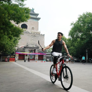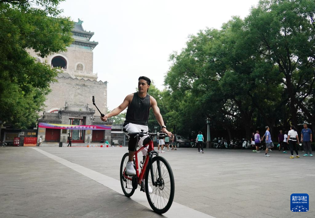 6月30日,兰佩丝在北京钟楼下骑行游玩。法国人兰佩丝在北京生活工作多年,他是一名计算机工程师,同时也是一名马拉松爱好者,每周都会到奥森公园进行训练。