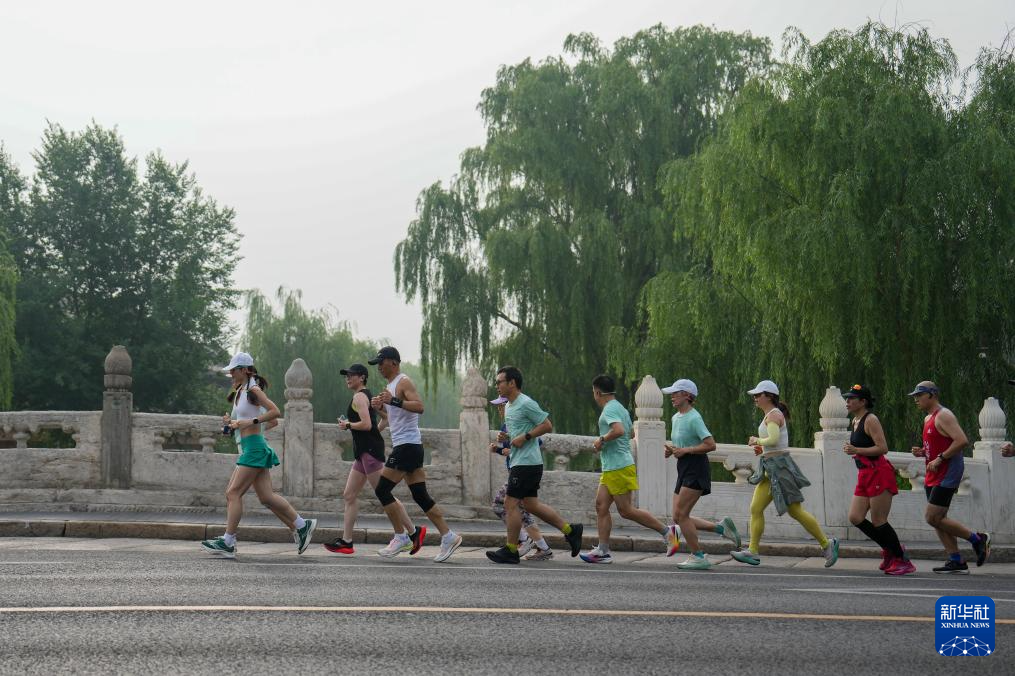 6月22日,跑步爱好者跑过位于北京中轴线上的万宁桥。