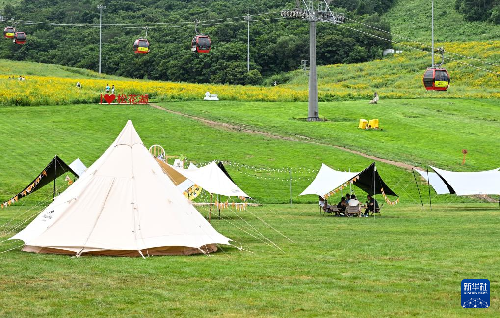吉林松花湖滑雪场内利用场地打造出不同的休闲区域,吸引不少游客前来露营(8月3日摄)。