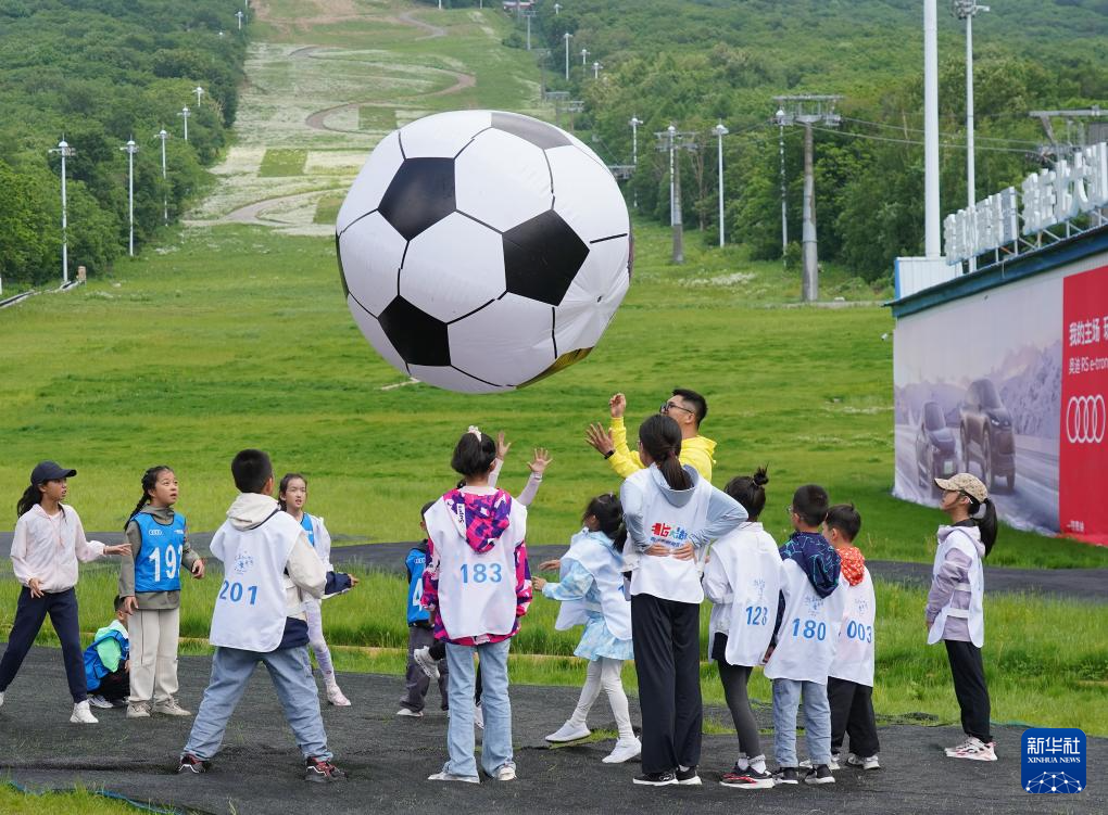 在吉林北大湖滑雪场内,“北大湖夏令营”举行开营活动(6月9日摄)。