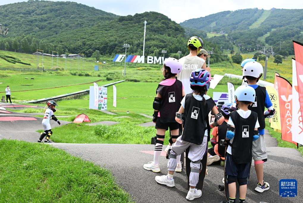 吉林松花湖滑雪场利用场地举行滑板活动,吸引许多小滑手来到这里竞技(8月3日摄)。