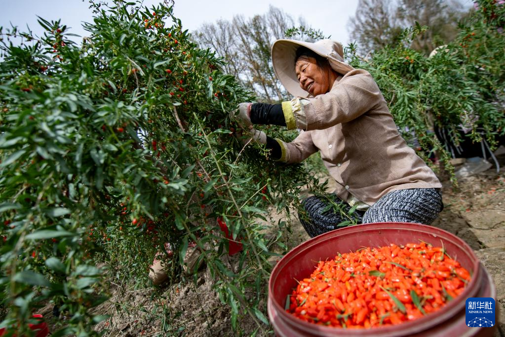八月上旬,青海省海西蒙古族藏族自治州德令哈市的头茬枸杞进入采摘期,采摘工人们抢抓晴好天气积极采摘、晾晒。