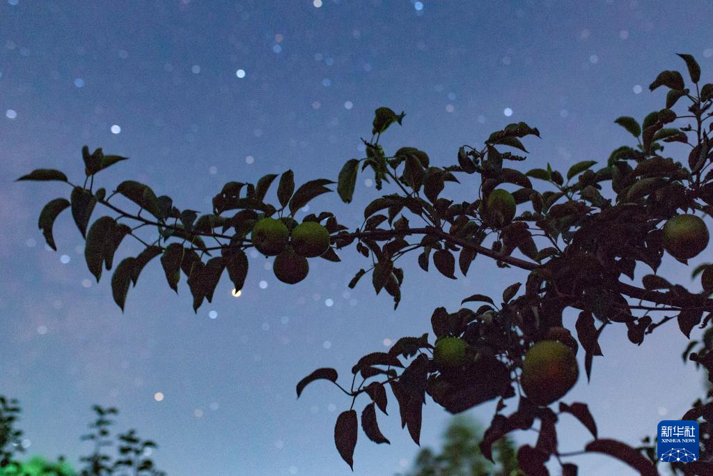 8月3日在黑龙江省佳木斯市四丰山拍摄的星空下的苹果。