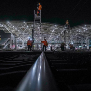连日来,江苏多地发布高温预警。上海高铁基础设施段集中投入500余人次,在凌晨铁路“天窗期”对沪宁城际、宁杭高铁的接触网设备进行检修,保障旅客安全舒适出行。