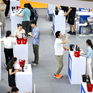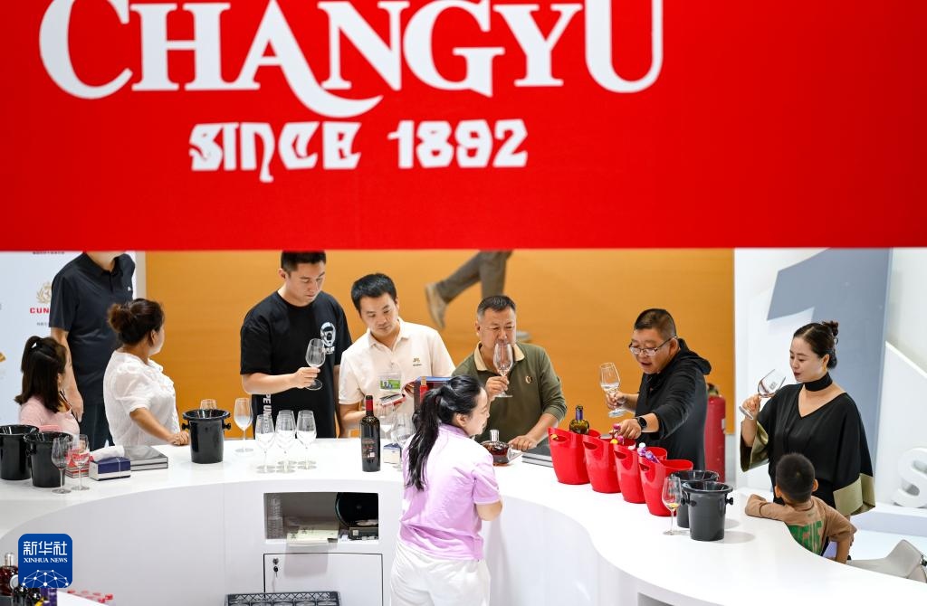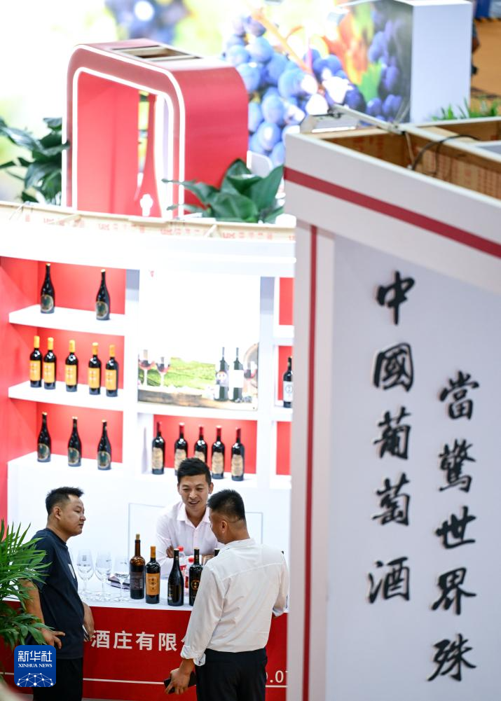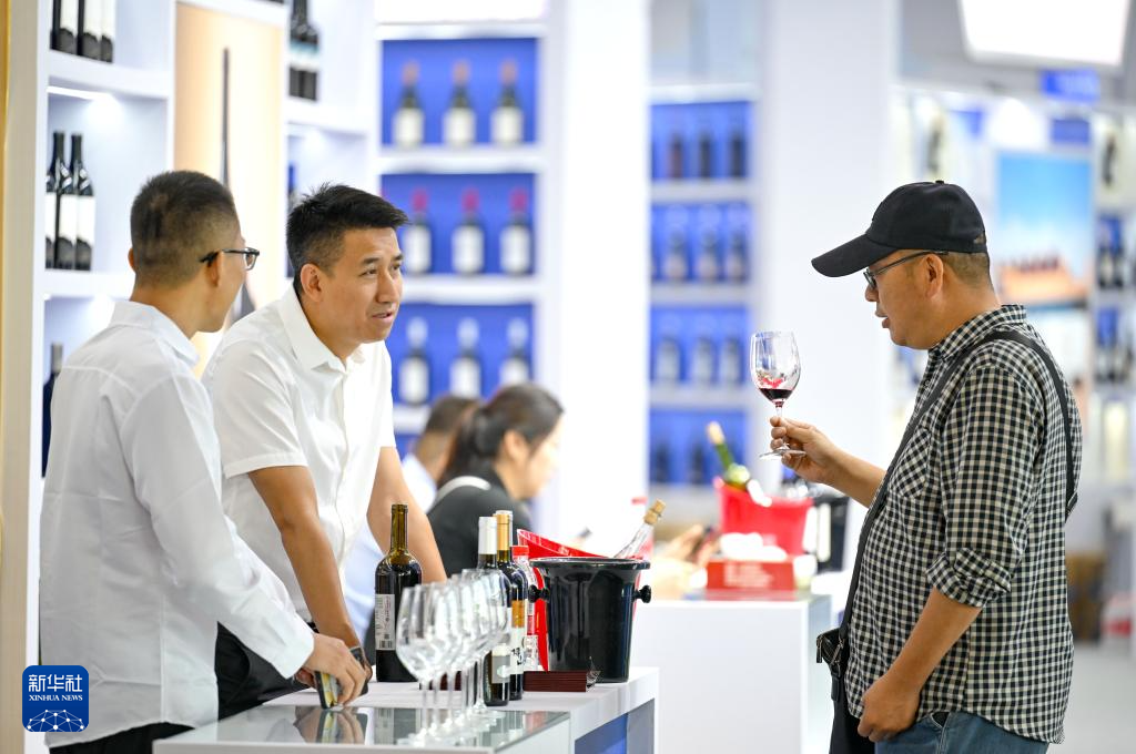8月9日,观众在贺兰山东麓国际葡萄酒交易会现场了解、品鉴葡萄酒。