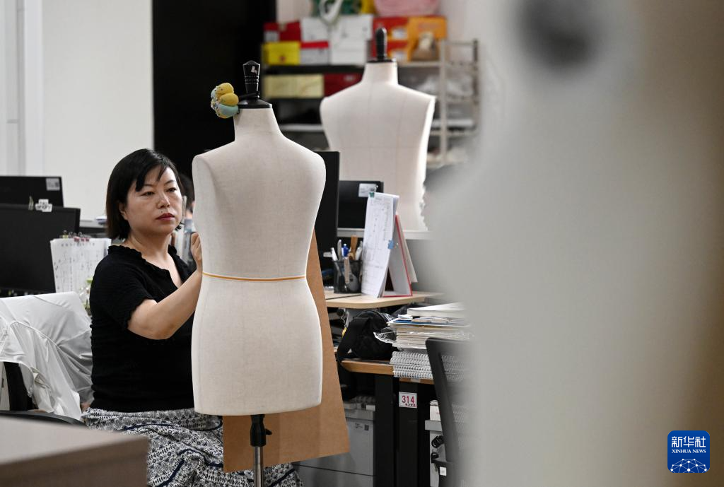 老美华开发部门工作人员在设计服装(8月7日摄)。