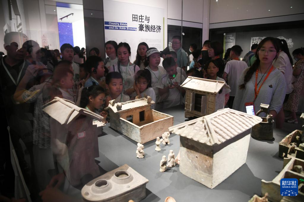 8月7日,游客在陕西历史博物馆秦汉馆参观。
