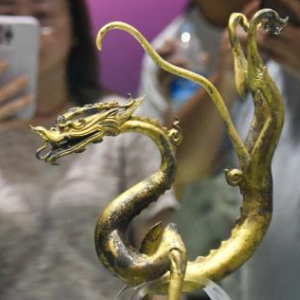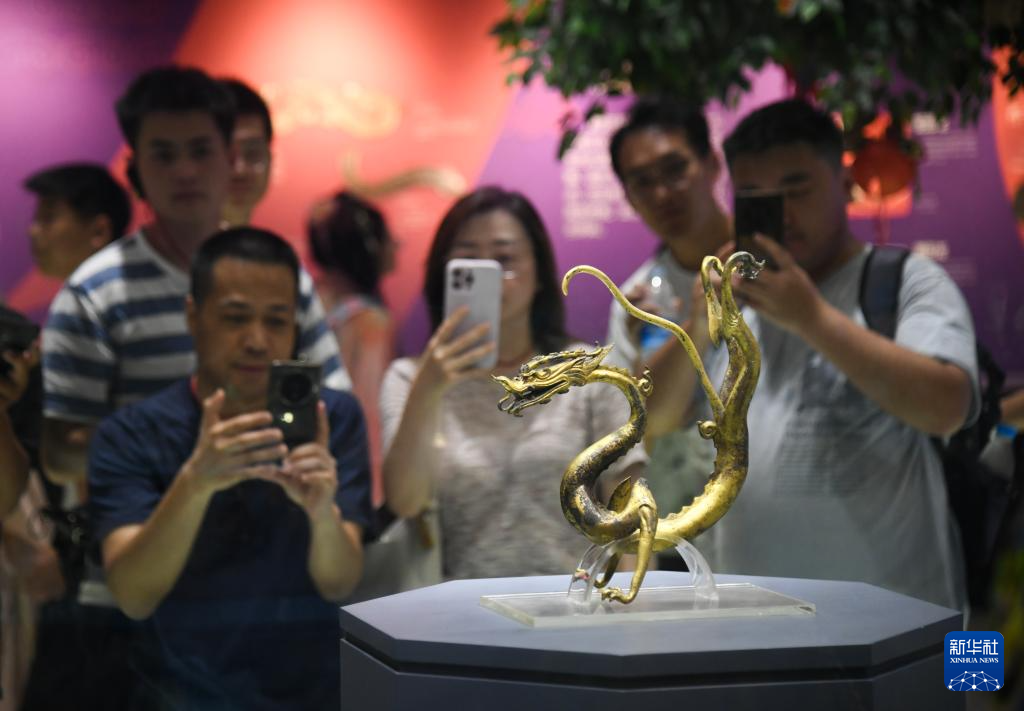 8月6日,游客在陕西历史博物馆参观、拍照。