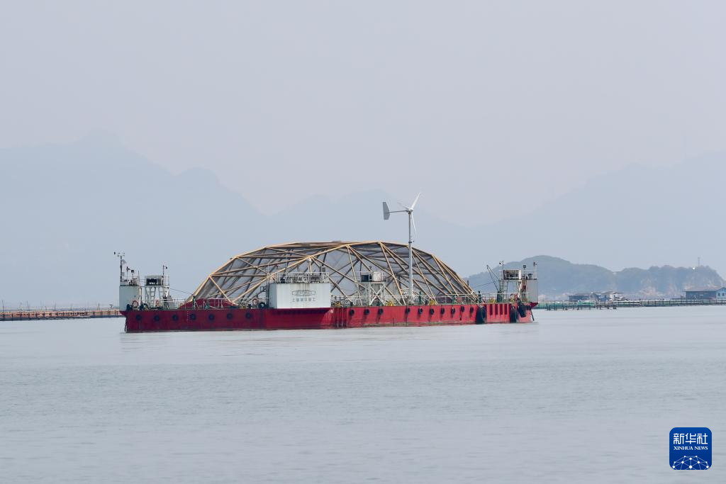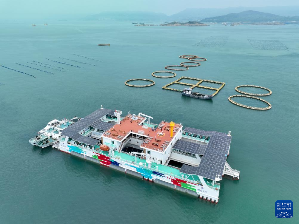 这是8月9日拍摄的福建连江定海湾“振渔1号”深远海养殖平台。