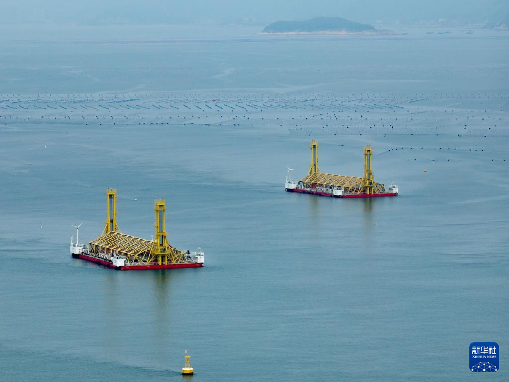 这是8月9日拍摄的福建连江定海湾“乾动1号”和“乾动2号”深远海养殖平台(无人机照片)。