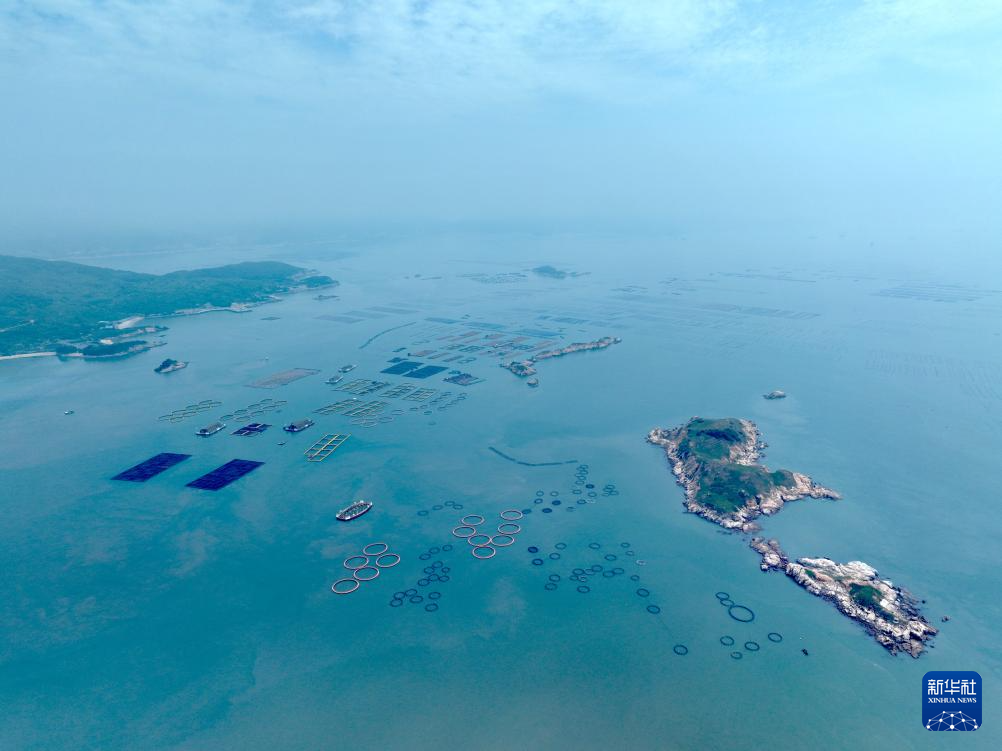 这是8月9日拍摄的福建连江定海湾养殖区(无人机照片)。