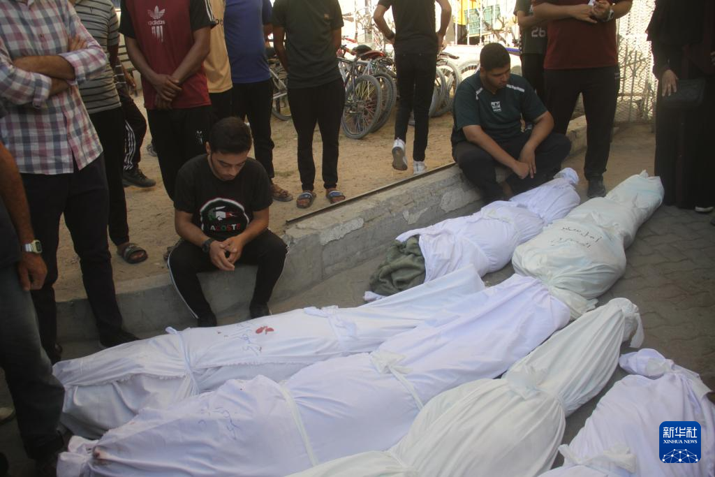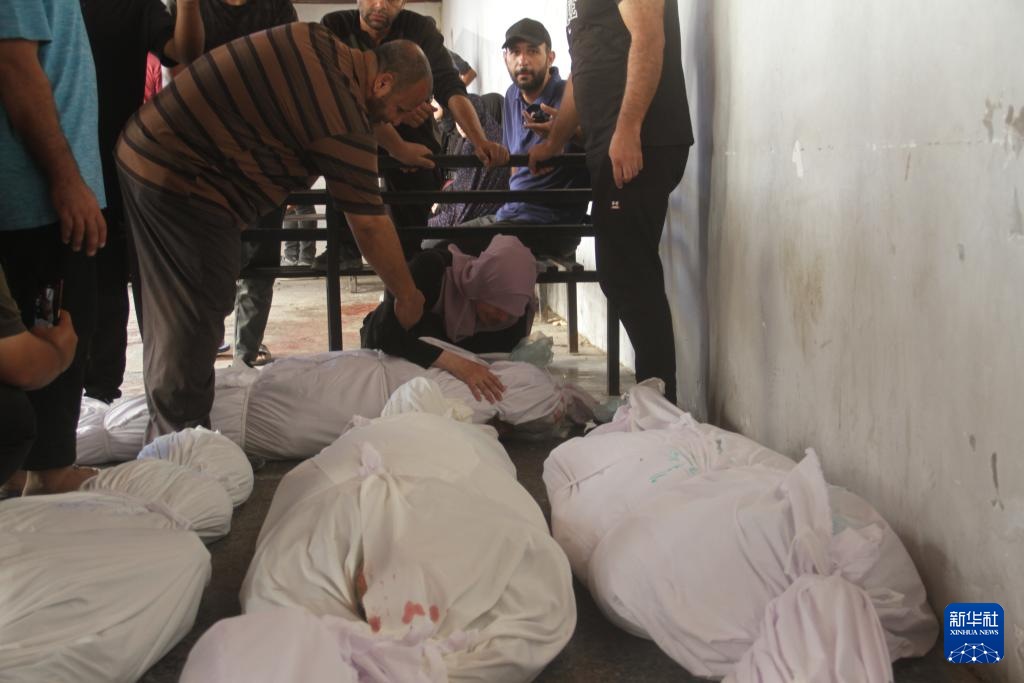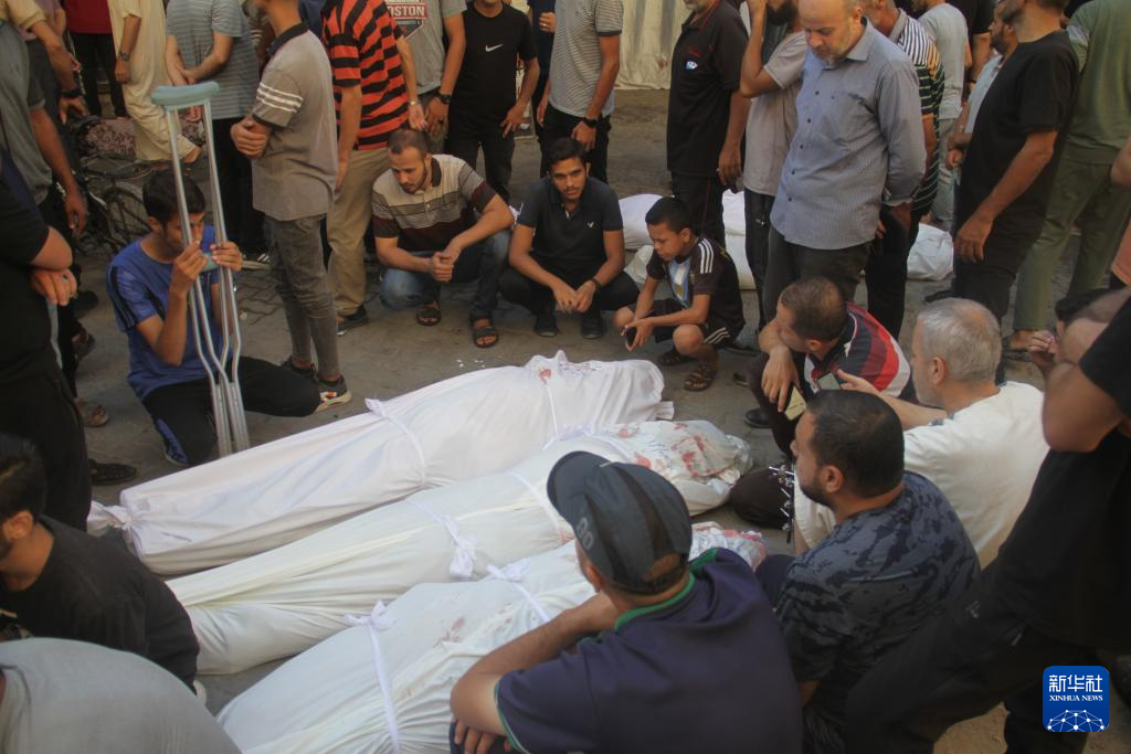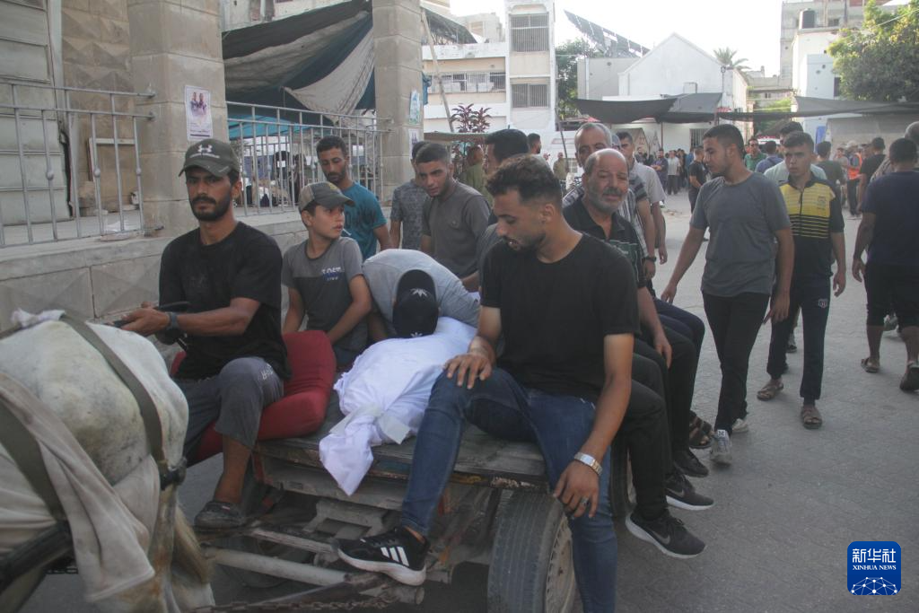 8月10日,在加沙地带北部加沙城,当地居民转移遇难者遗体。