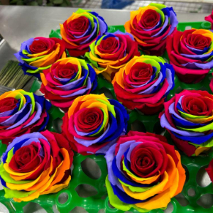 8月7日,在厄瓜多尔卡扬贝市埃米亚纳公司,经过染色处理后的玫瑰正在烘干车间中静置烘干。