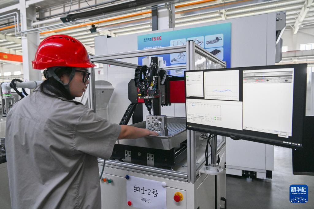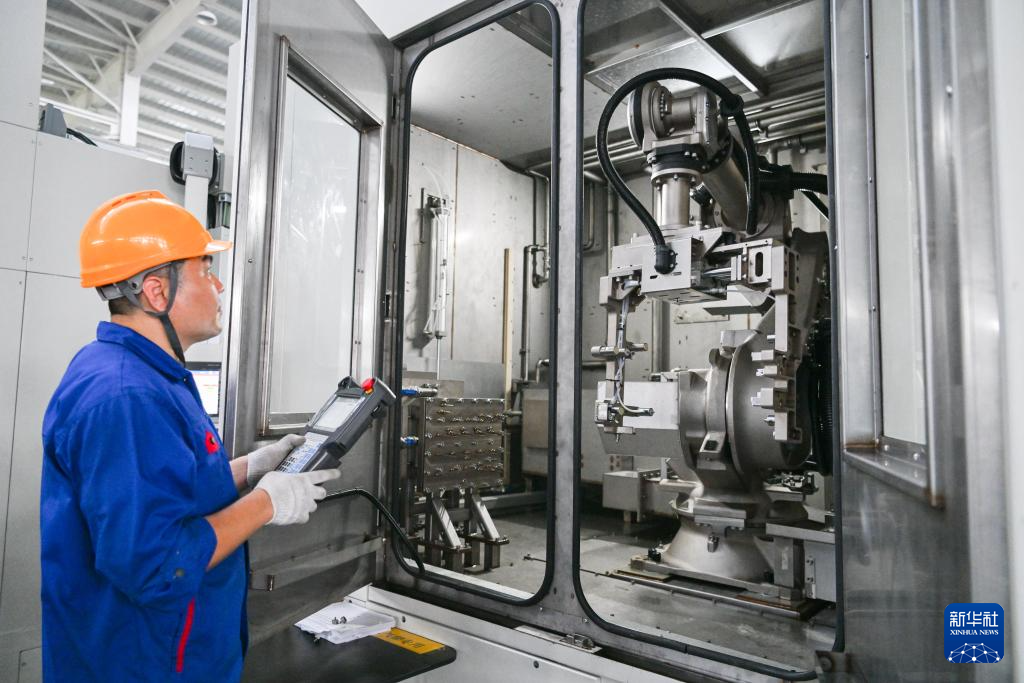 在位于哈尔滨新区的哈尔滨岛田大鹏工业股份有限公司生产调试区,技术人员对产品进行调试(8月9日摄)。