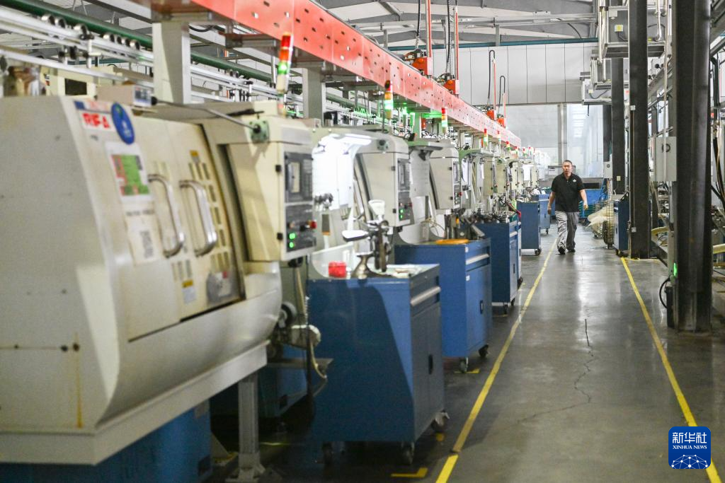 工作人员在位于哈尔滨新区的哈尔滨轴承集团有限公司电机轴承数字化装配间工作(8月9日摄)。