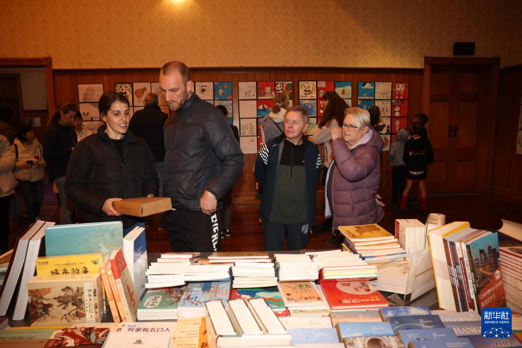 8月10日,在新西兰怀帕市,人们在2024中国主题图书展暨“大熊猫遇见几维鸟”中国新西兰国际青少年艺术展上参观。