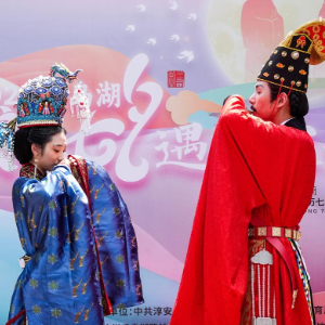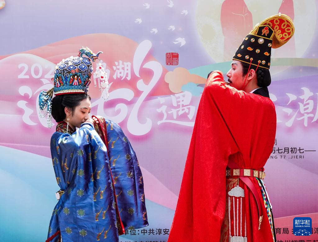 8月10日,浙江杭州淳安县里商乡举办千岛湖桨板节暨浪漫七夕遇见宋“潮”杨桂枝主题活动,包括宋韵文化展示、桨板水上迎亲、七夕荷花灯等活动内容。800多年前,出生在淳安的平民女子杨桂枝赢得宋宁宗爱慕成为大宋皇后;如今,这段浪漫的爱情故事,已成为当地传续宋韵文化、打造爱情之乡的一张金名片。