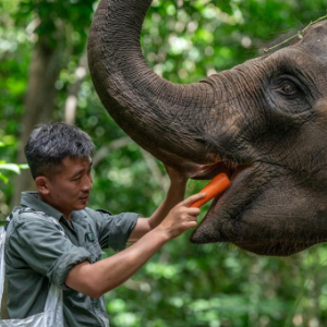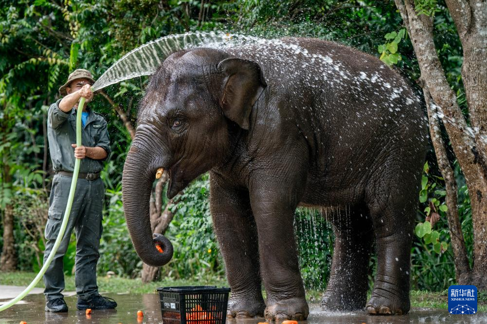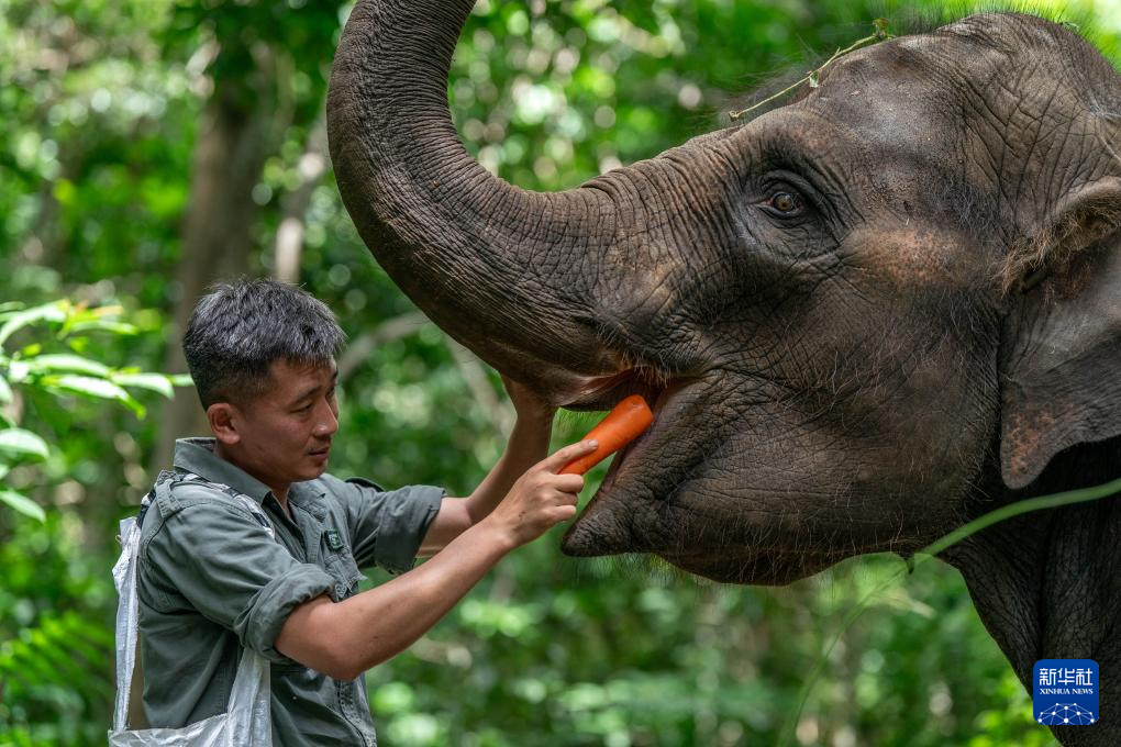 云南省西双版纳亚洲象救护与繁育中心是我国目前唯一以亚洲象收容、救助和繁育研究为核心的科研基地。截至2024年6月,该中心累计收容、救助野生亚洲象23头,其中龙龙、羊妞、小强等9头野生亚洲象收容在救护中心。这里的专职驯养员“象爸爸”会悉心照料它们的生活,并带它们进行野化训练、定期体检,努力帮助它们早日回归自然。