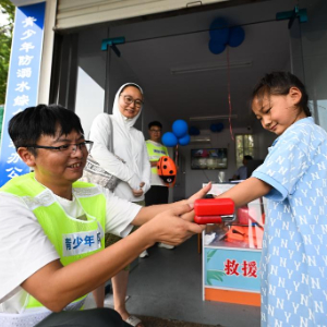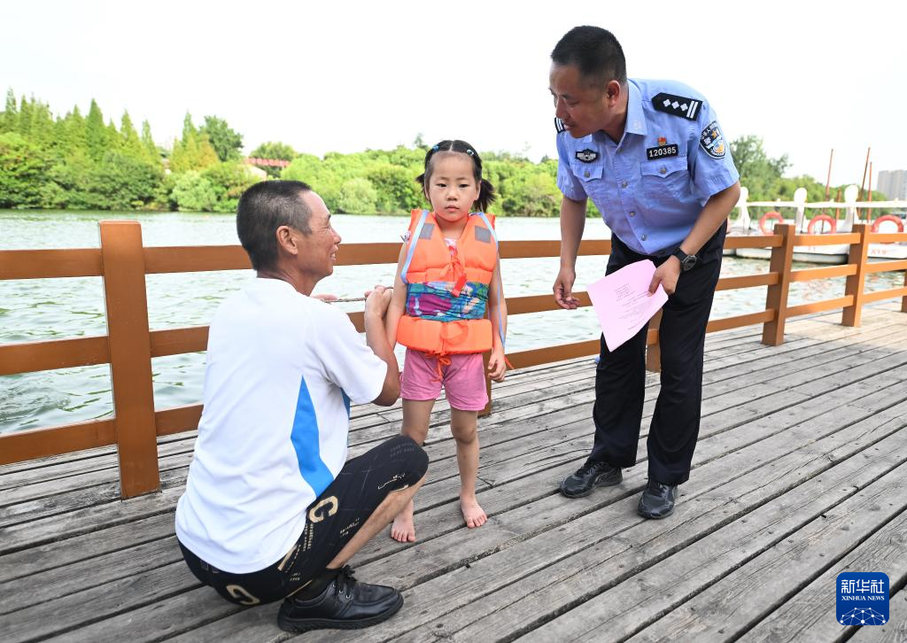 暑假期间,江苏省泰州市公安局联合教育局、水利局、保安公司等单位成立防溺水专班,依托海陵区东河小游船码头“青少年防溺水救助站”,在户外游泳密集区域,开展日常巡查、救援工作,同时向未成年人宣传自我防护知识。