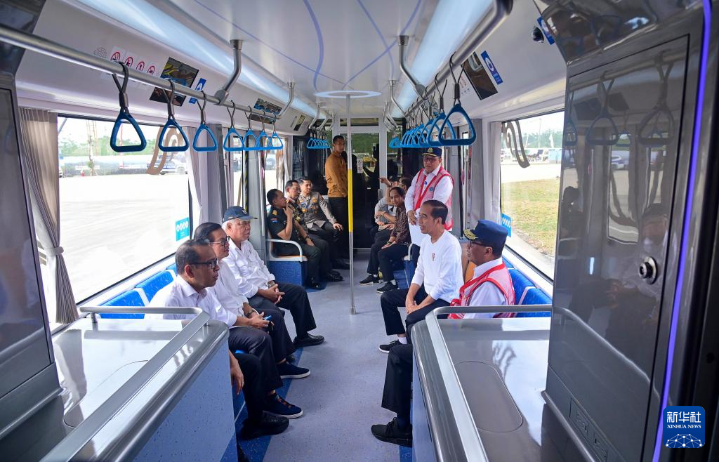 印度尼西亚总统佐科8月13日携多名内阁部长在新首都努山塔拉试乘由中国企业推出的智轨系统。他当天表示,相比传统轨道交通,相信智轨系统能够提供更可持续、更具成本效益的替代方案。