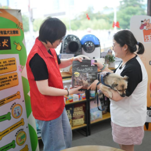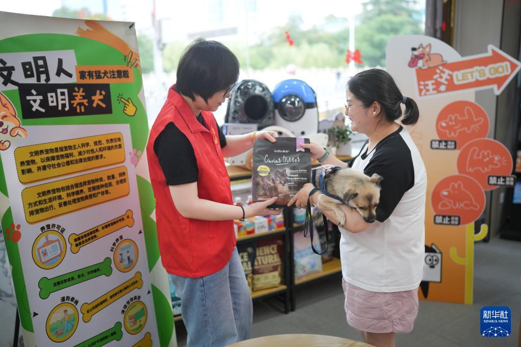 8月13日,居民在湖州市月河街道马军巷社区萌宠驿站进行文明养犬积分兑换。