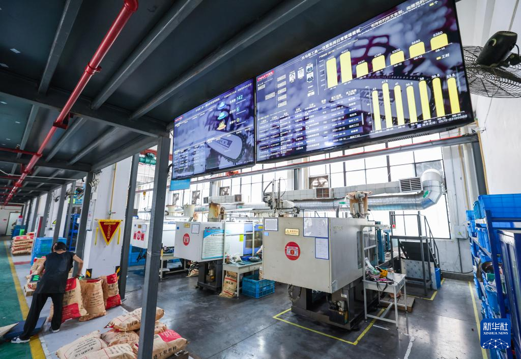 8月14日,在金华市金东区曹宅镇的浙江托马斯工具制造有限公司数字化注塑车间内,自动化机床在生产园林机械配件。