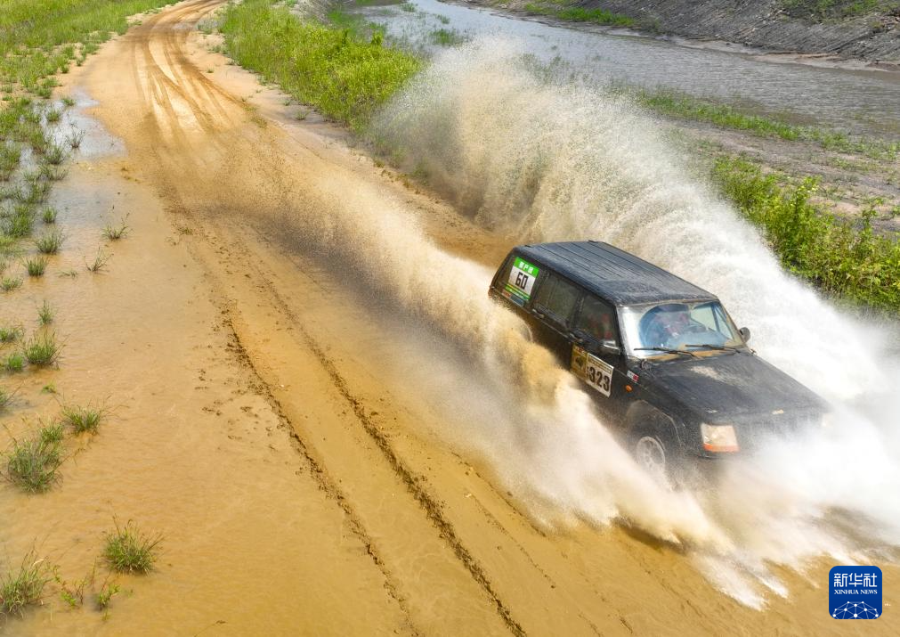 8月14日,赛车在阜新百年国际赛道城赛道上训练(无人机照片)。