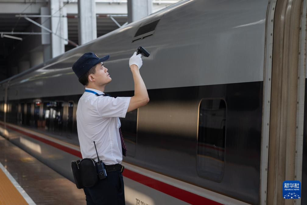 8月16日,渝昆高铁渝宜段进入运行试验阶段,工作人员在检测车发车前进行准备工作。