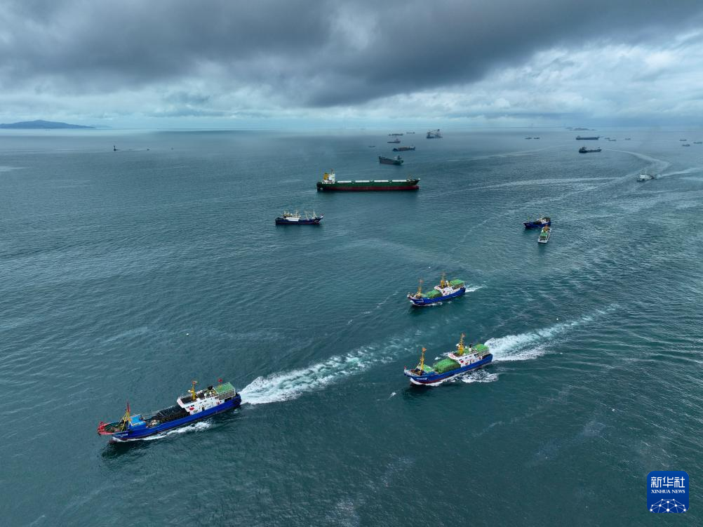 8月16日,在福建省福州市连江县黄岐国家中心渔港,渔船开渔出海(无人机照片)。