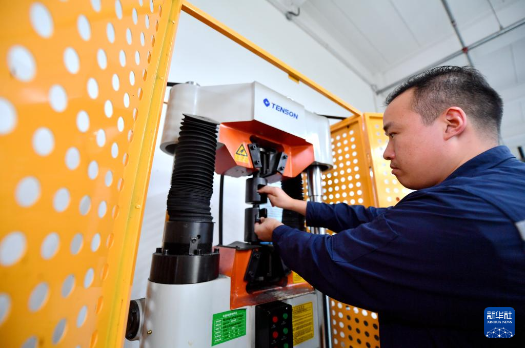 8月16日,工作人员在位于邯郸市永年区的河北省紧固件产业技术研究院实验室内对紧固件进行强度拉伸测试。