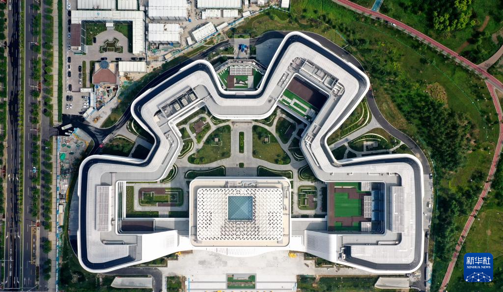 这是位于雄安新区启动区内的中国卫星网络集团有限公司总部大楼建设现场(8月8日摄,无人机照片)。目前大楼正在进行内部装修,有望在今年投用。