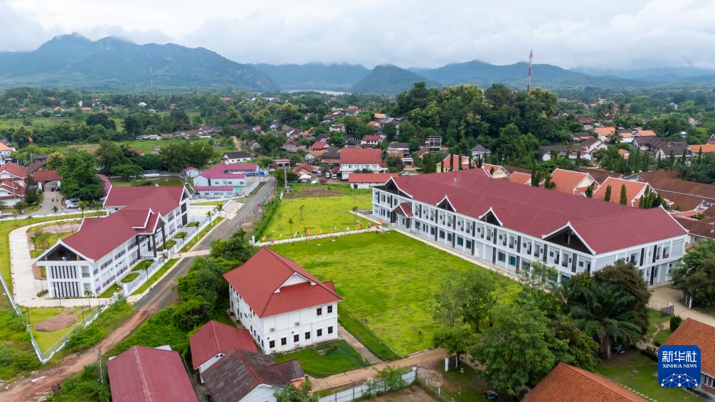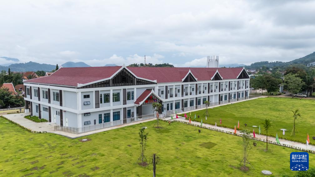 这是8月16日拍摄的老挝琅勃拉邦医院新建的外科楼(无人机照片)。