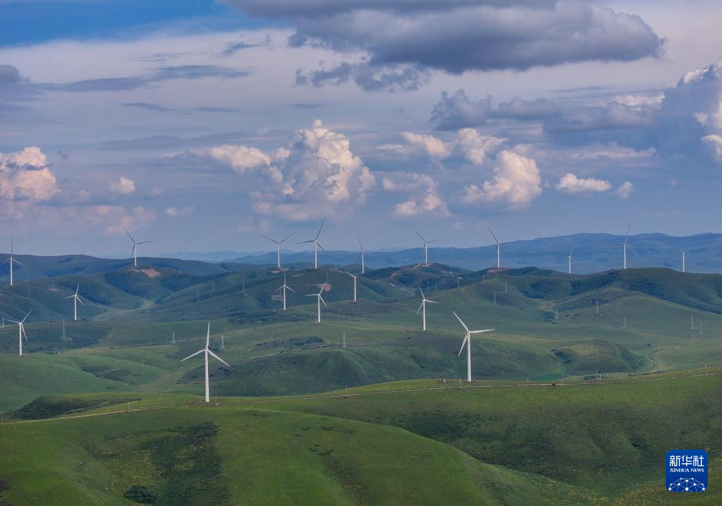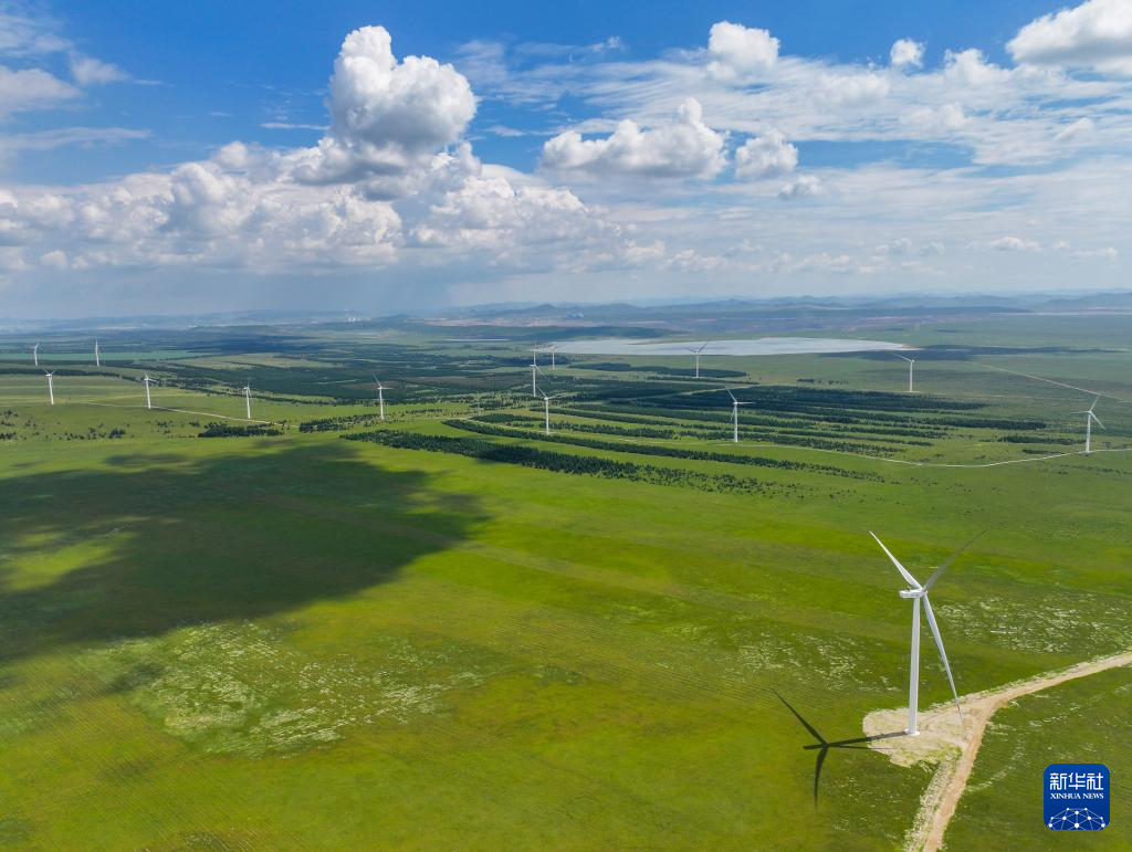 这是8月17日拍摄的内蒙古通辽市霍林郭勒一处风电场(无人机照片)。