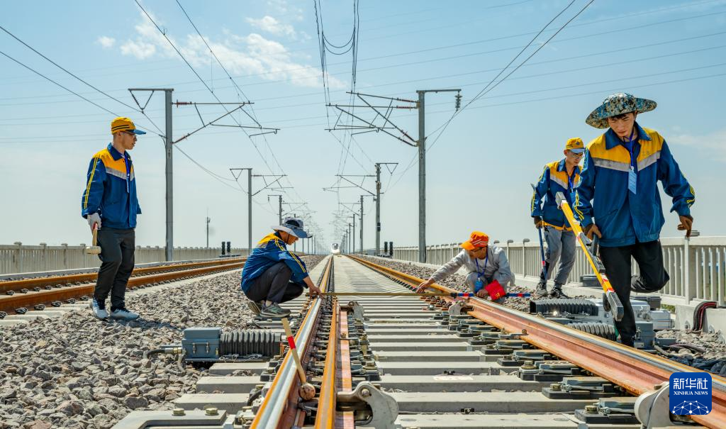 8月17日,包银高铁惠银段开展故障模拟演练,银川工务段职工对道岔几何尺寸进行测量。