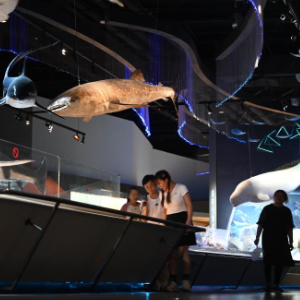 暑假期间,位于天津市滨海新区的国家海洋博物馆夜场迎来游览高峰。据介绍,为丰富公众文化生活,5月18日至10月7日期间的每周六日及法定假日,国家海洋博物馆开展夜间延时服务,参观时间延长至21时。