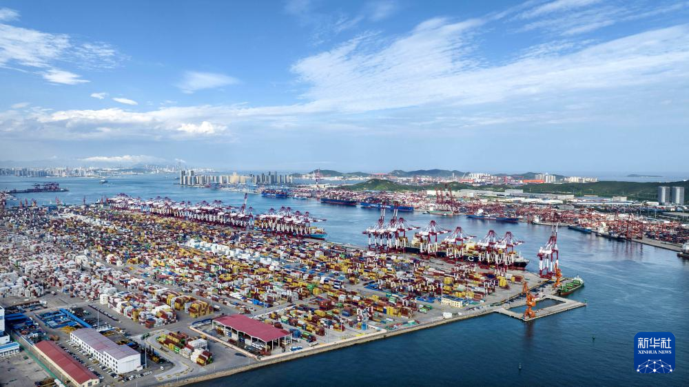 繁忙的青岛前湾港(8月6日摄,无人机照片)。