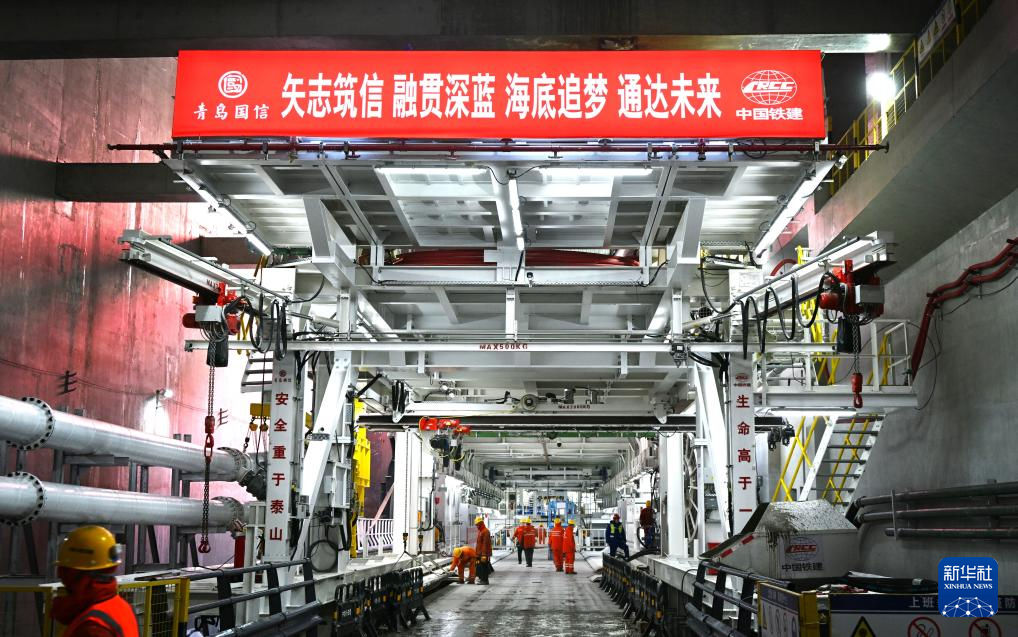 青岛胶州湾第二海底隧道施工现场(1月23日摄)。