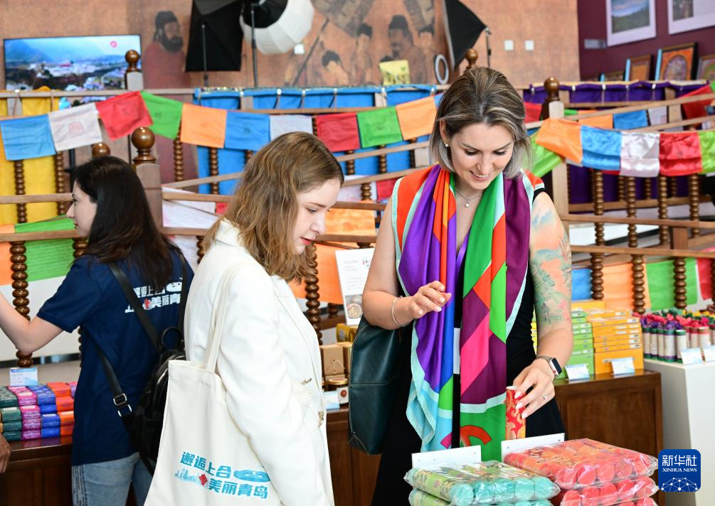 参加2024“邂逅上合·美丽青岛”来华留学生社会实践活动的留学生在位于青岛胶州的上合之珠国际博览中心参观(6月25日摄)。