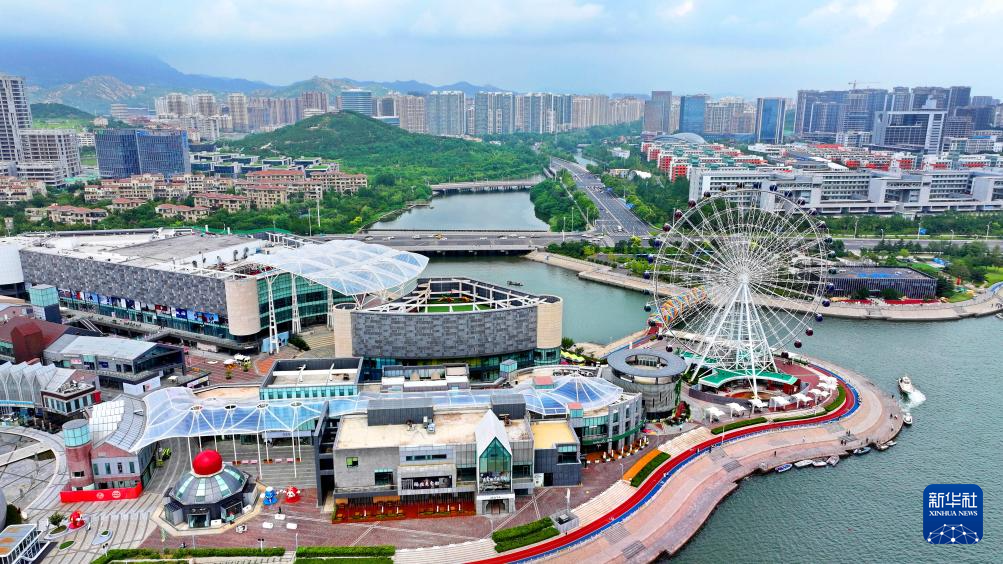 这是青岛西海岸新区“海上嘉年华”市民购物休闲综合体(8月14日摄,无人机照片)。