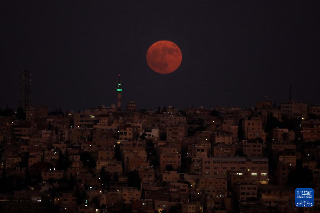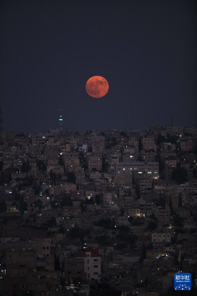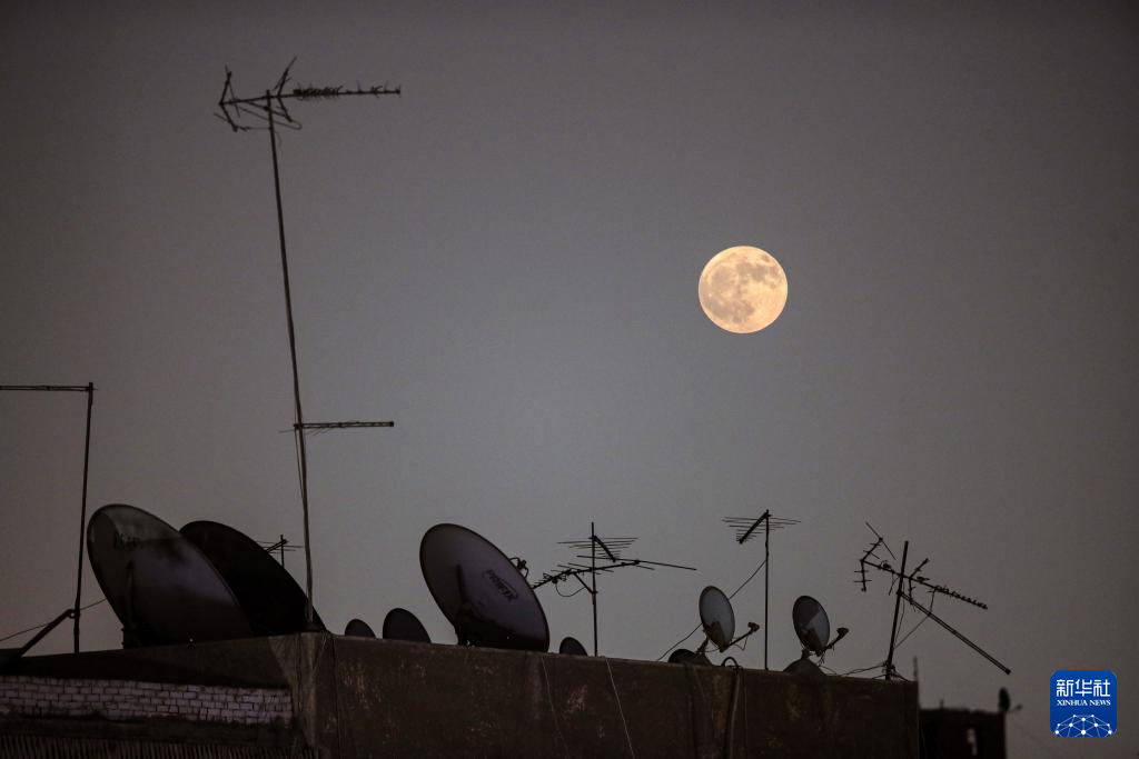 这是8月19日在塞浦路斯帕福斯拍摄的空中的圆月。