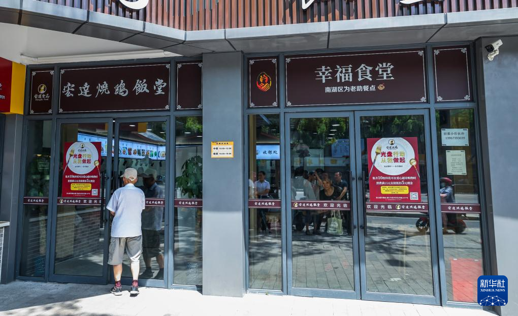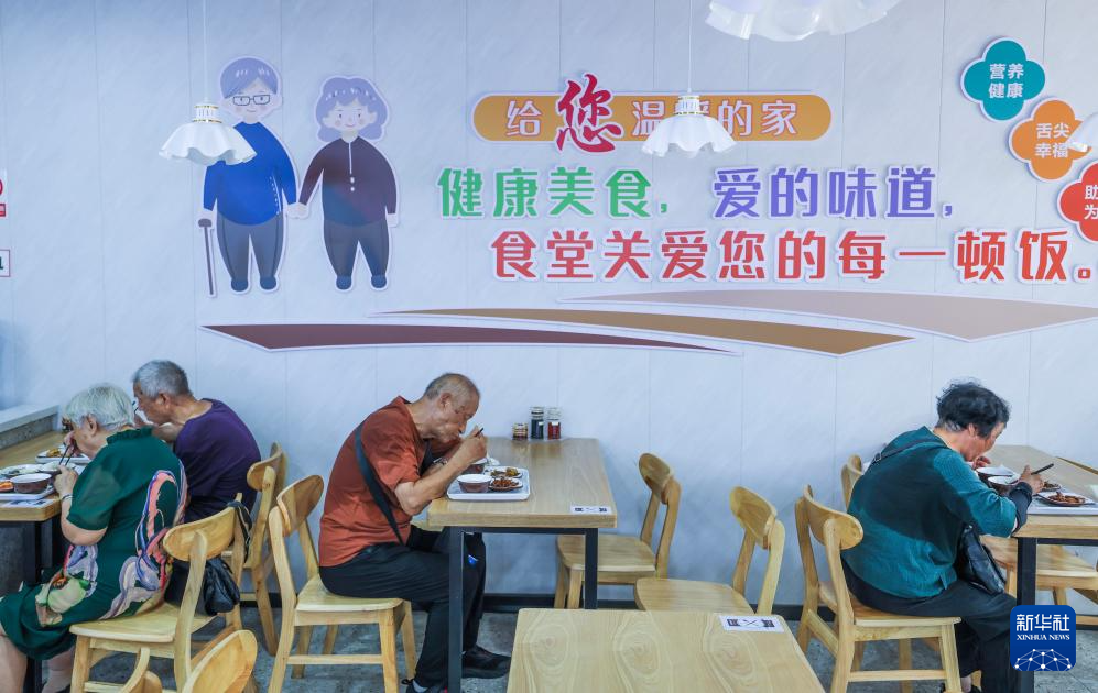 8月20日,老人在嘉兴市南湖区新嘉街道清华社区的幸福食堂用餐。