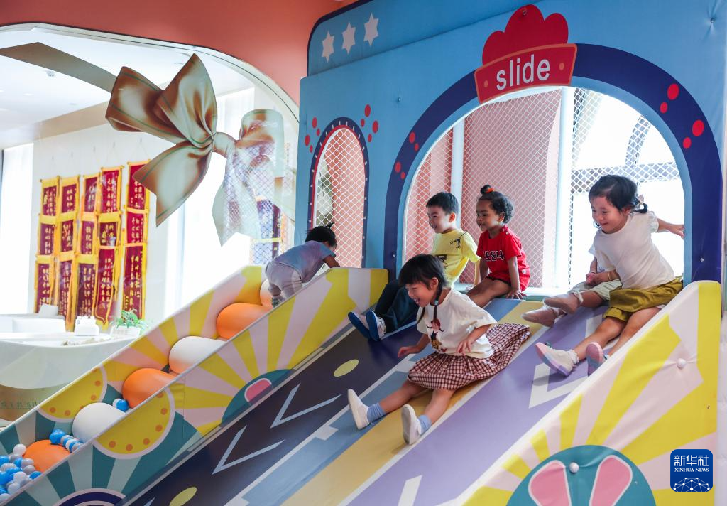 8月20日,在嘉兴市南湖区东栅街道的一家托育机构里,小朋友在活动。