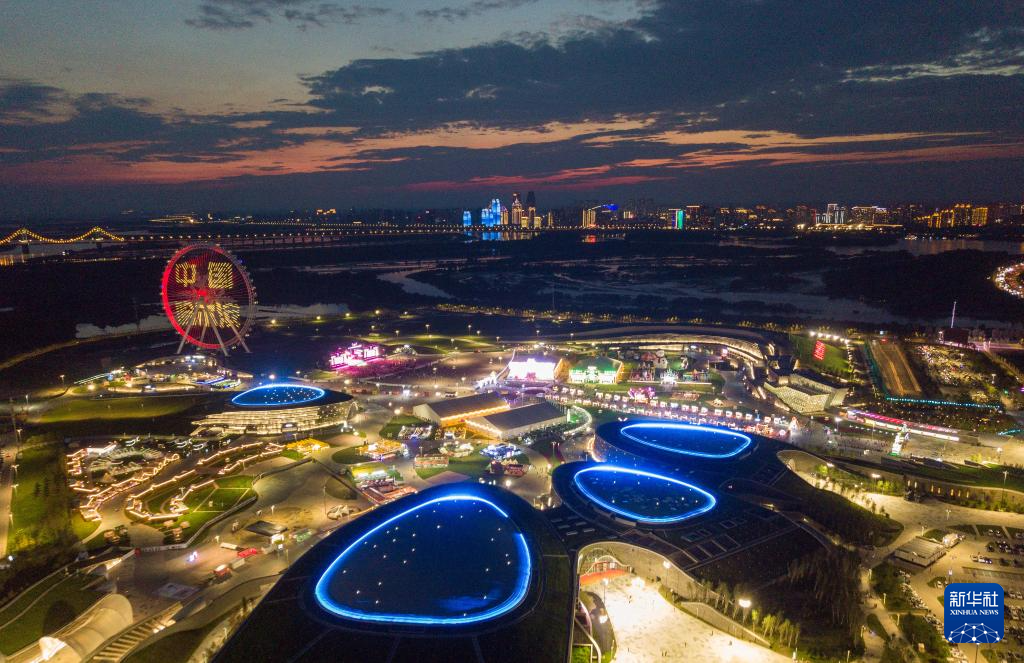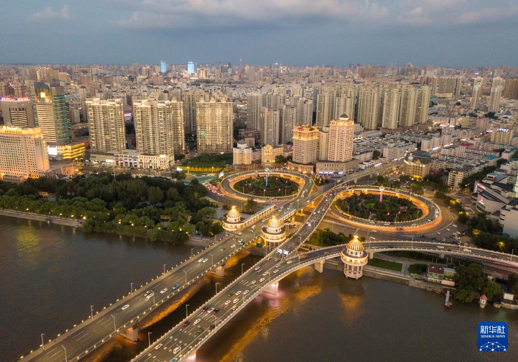 这是7月21日拍摄的中国(黑龙江)自由贸易试验区哈尔滨片区的夜景(无人机照片)。
